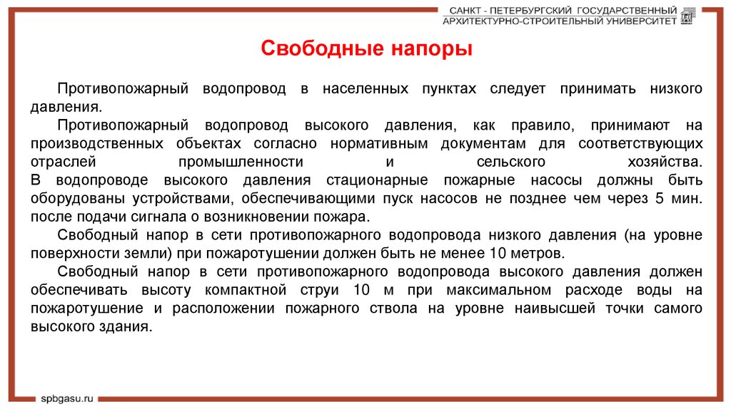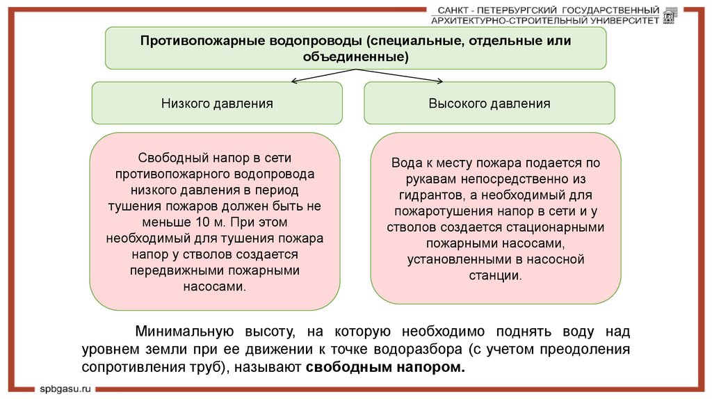 Противопожарные водопроводы (специальные, отдельные илиобъединенные)