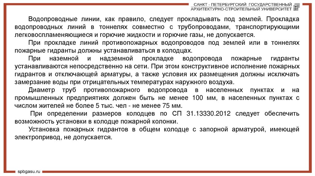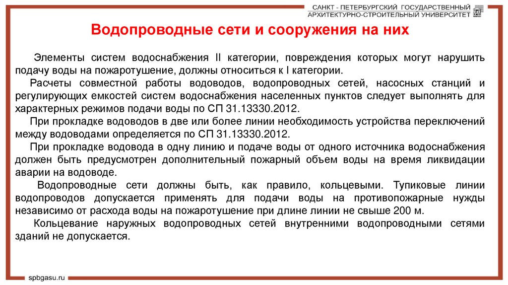 1. СП 31.13330.2021 Водоснабжение. Наружные сети и сооружения.2. СП 8.13130.2020 Системы противопожарной защиты. Наружное