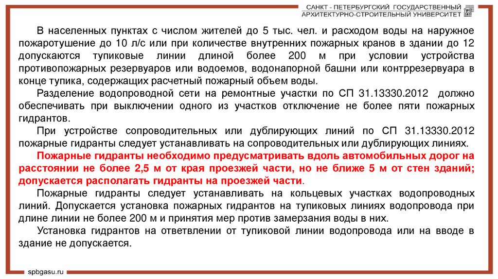 участков водопроводной сети и (или) пожарных гидрантов, находящихся на территории
