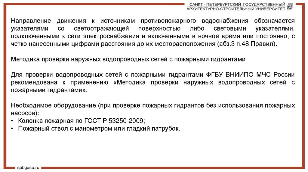 Методика проверки наружных водопроводных сетей с пожарными гидрантами