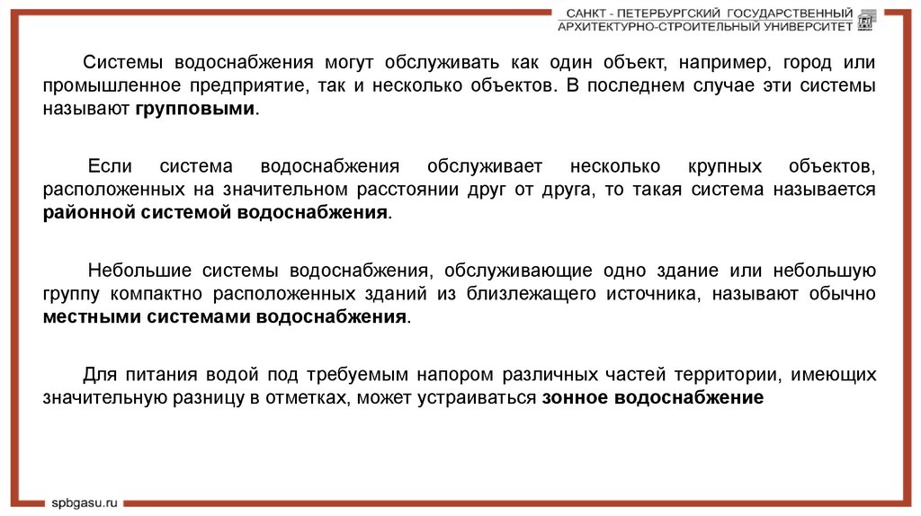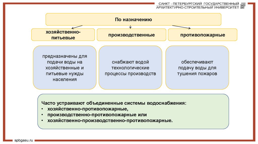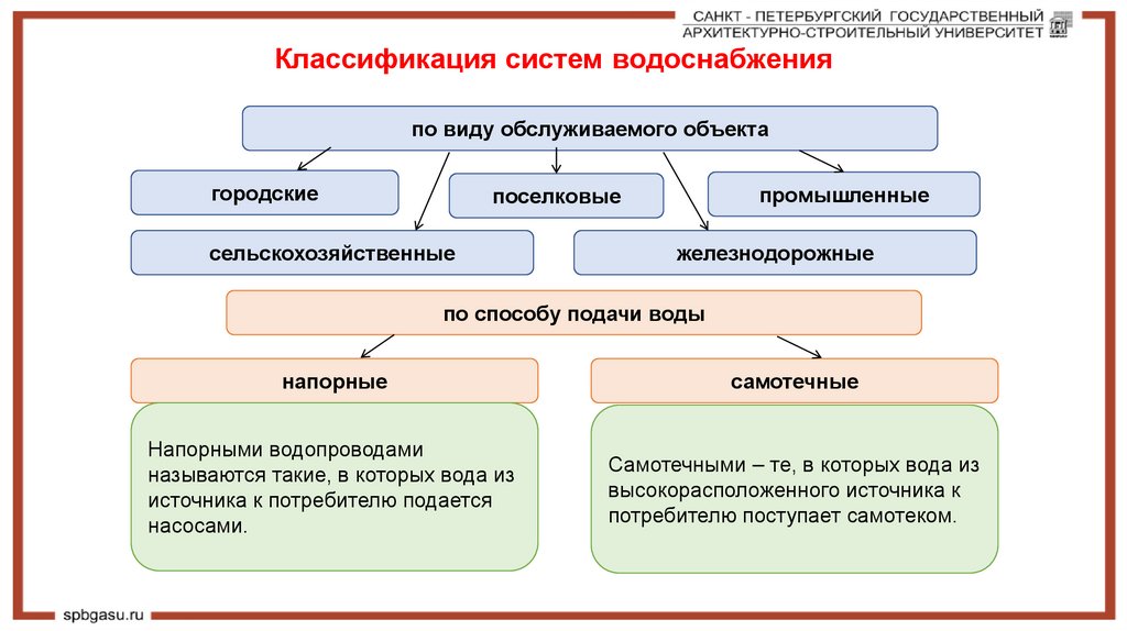 Классификация систем водоснабженияпо виду обслуживаемого объекта