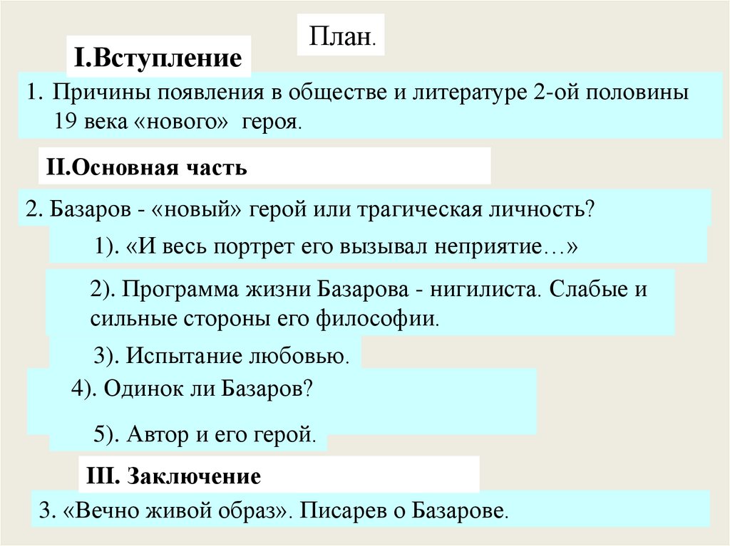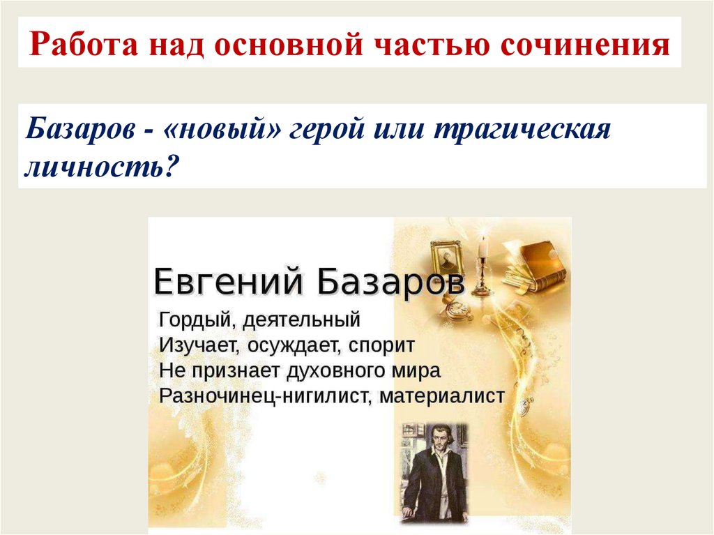 Работа над основной частью сочиненияБазаров - «новый» герой или трагическая
