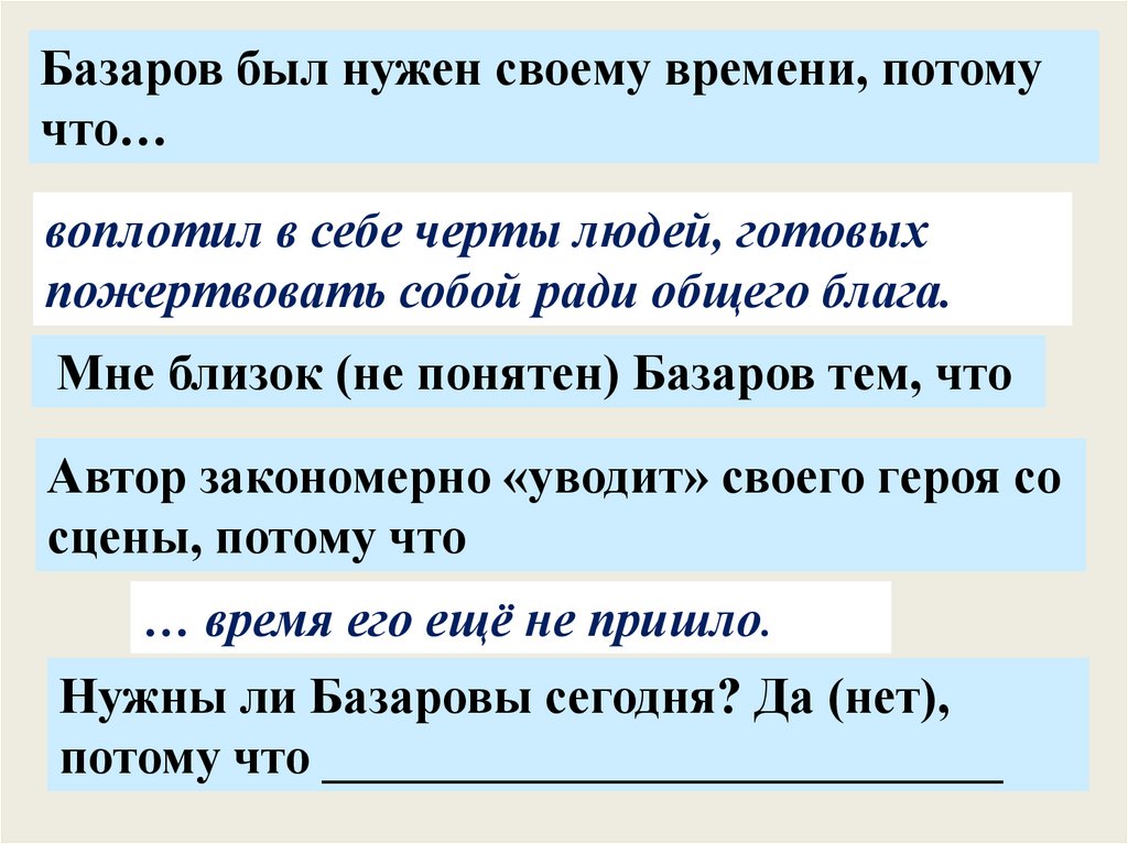 Работа над сочинением по теме«Евгений Базаров – «новый герой»