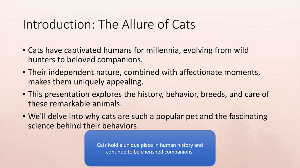 Introduction: The Allure of Cats• Cats have captivated humans for millennia, evolving from wild