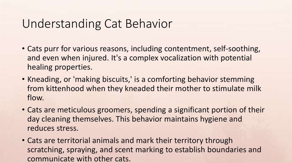 Understanding Cat Behavior• Cats purr for various reasons, including contentment, self-soothing,