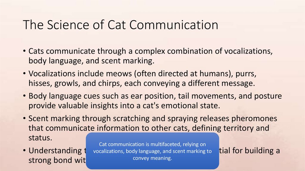 The Science of Cat Communication• Cats communicate through a complex combination of vocalizations,