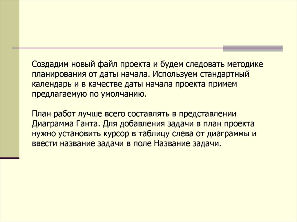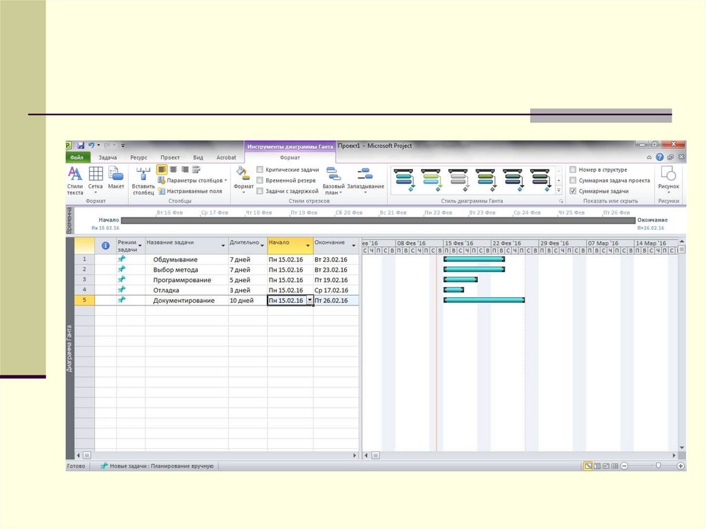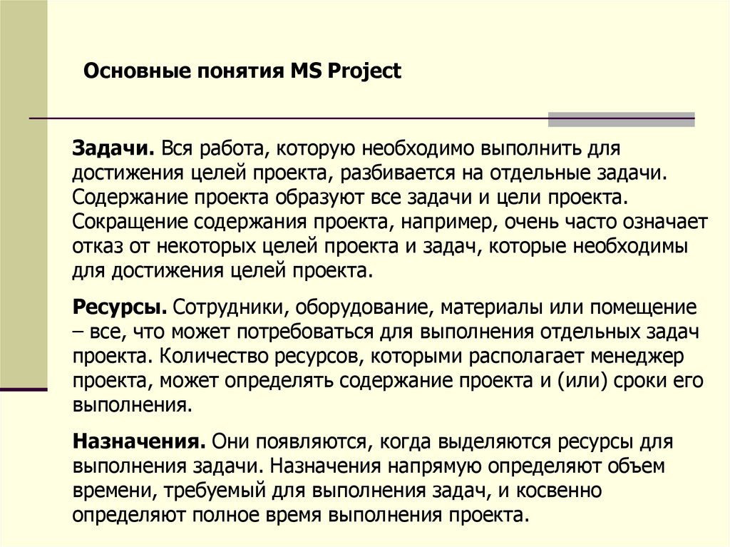 Основные понятия MS ProjectЗадачи. Вся работа, которую необходимо выполнить для