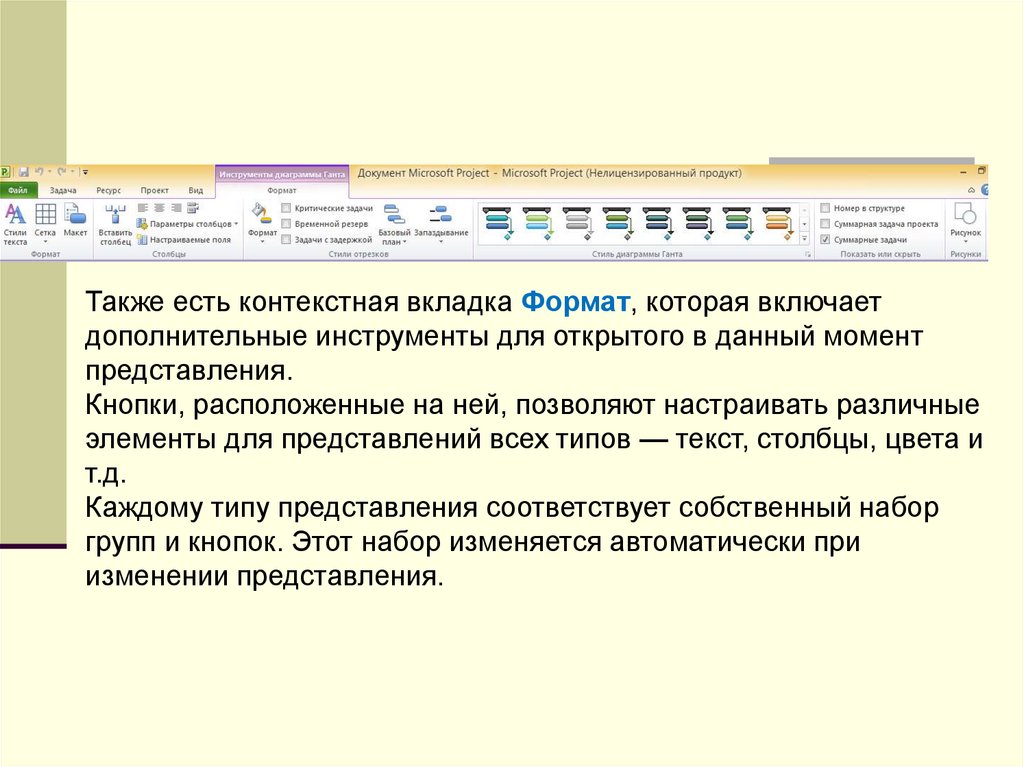 Также есть контекстная вкладка Формат, которая включаетдополнительные инструменты для открытого в данный момент