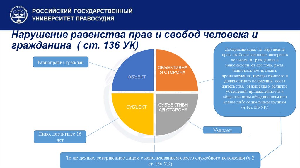 Нарушение равенства прав и свобод человека игражданина ( ст. 136 УК)