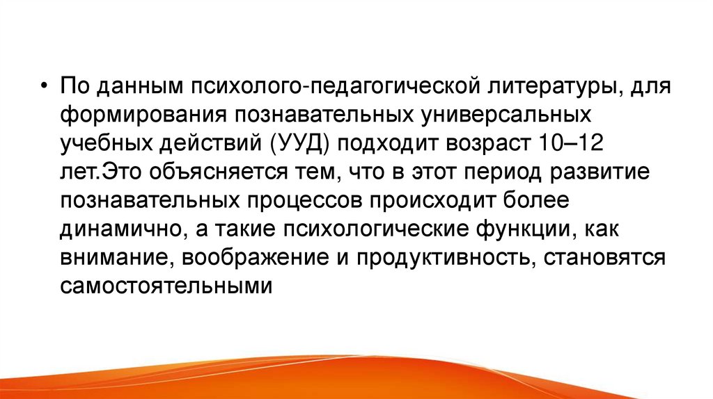 • По данным психолого-педагогической литературы, дляформирования познавательных универсальных
