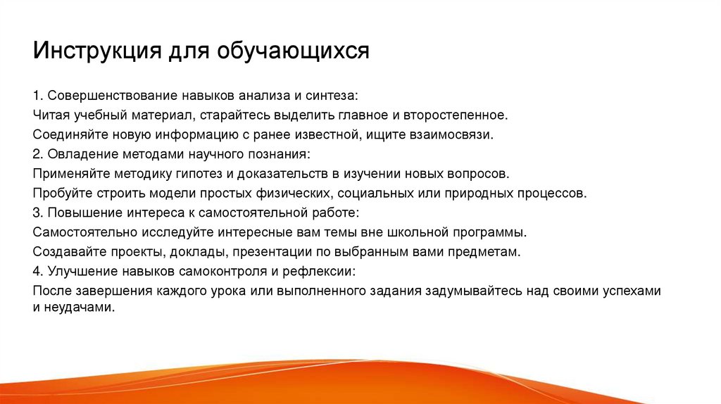 Инструкция для обучающихся1. Совершенствование навыков анализа и синтеза: