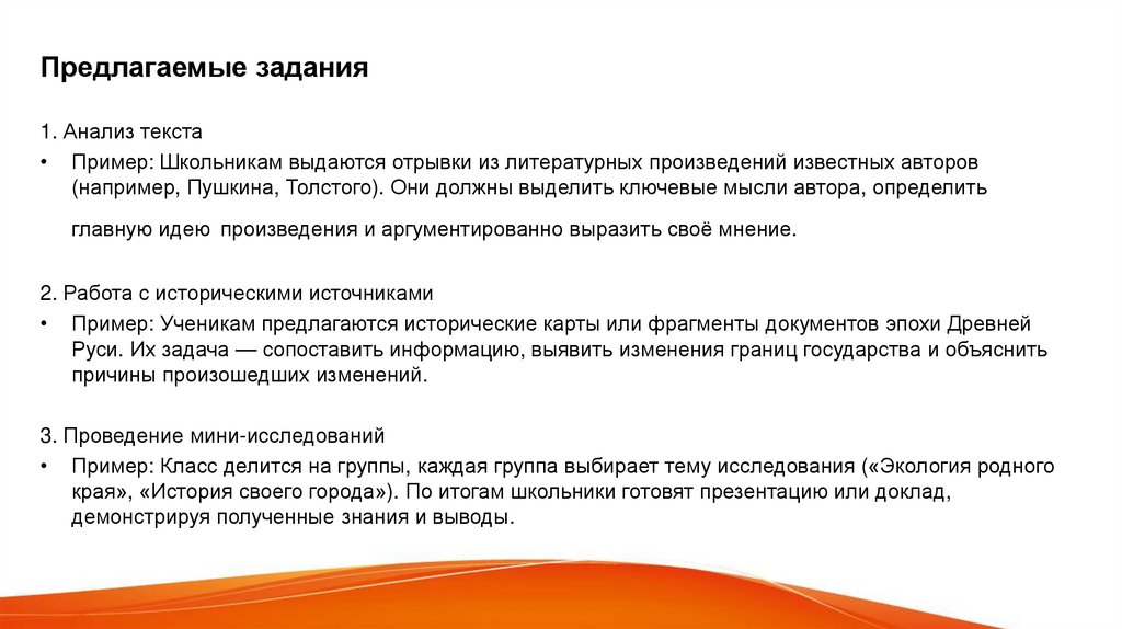 края», «История своего города»). По итогам школьники готовят презентацию или доклад,