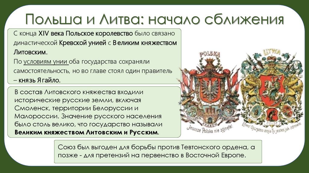 Союз был выгоден для борьбы против Тевтонского ордена, а