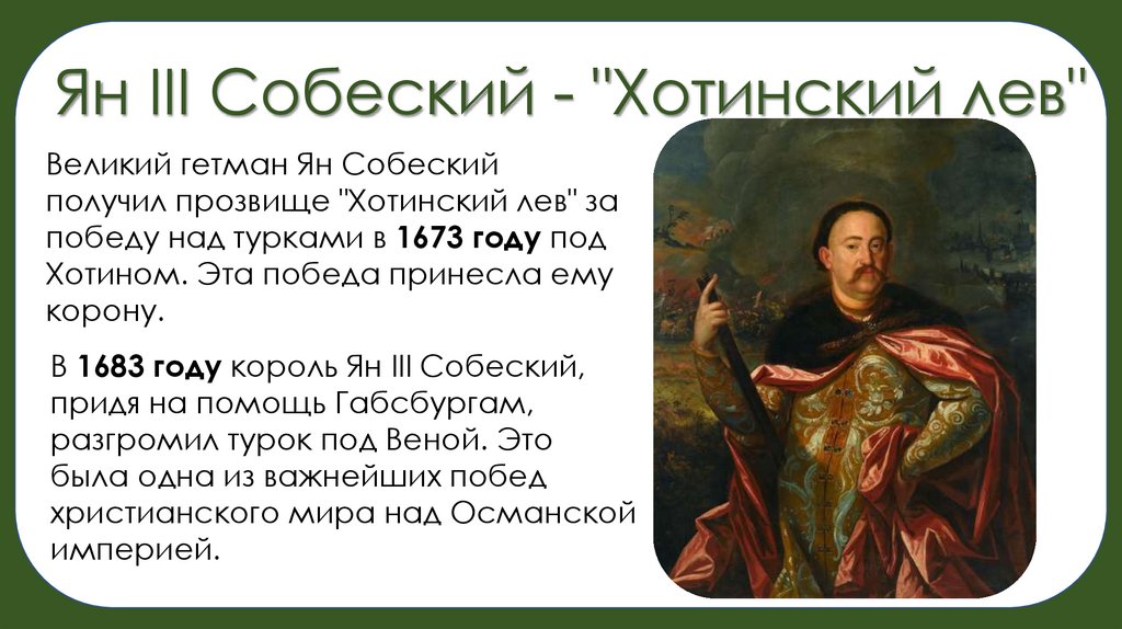 Ян III Собеский - "Хотинский лев"Великий гетман Ян Собеский
