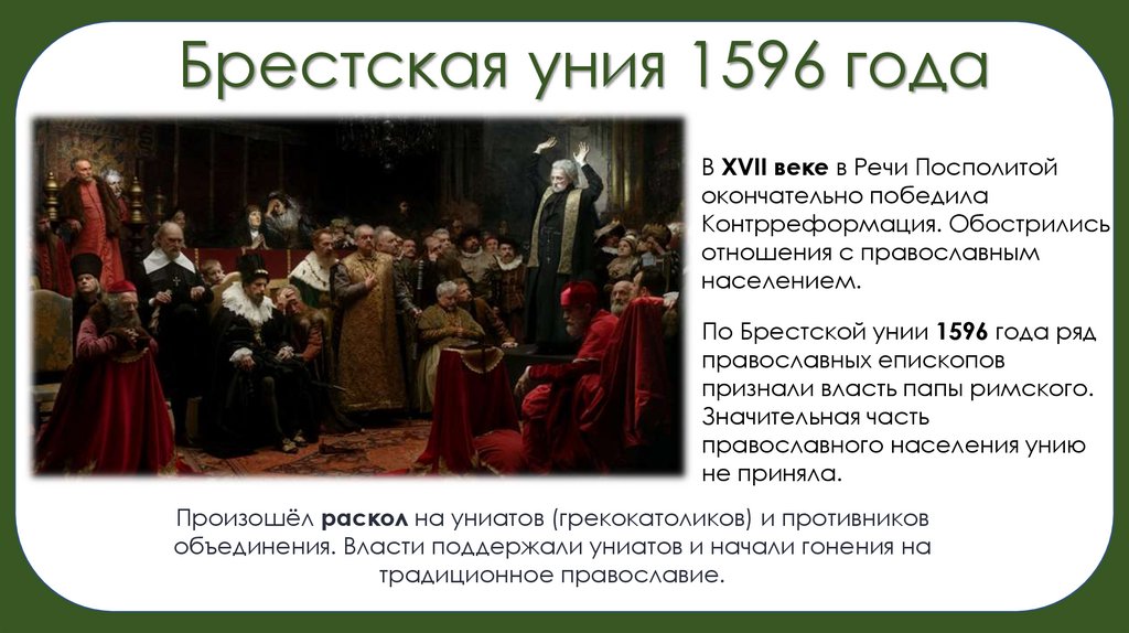Брестская уния 1596 годаВ XVII веке в Речи Посполитой