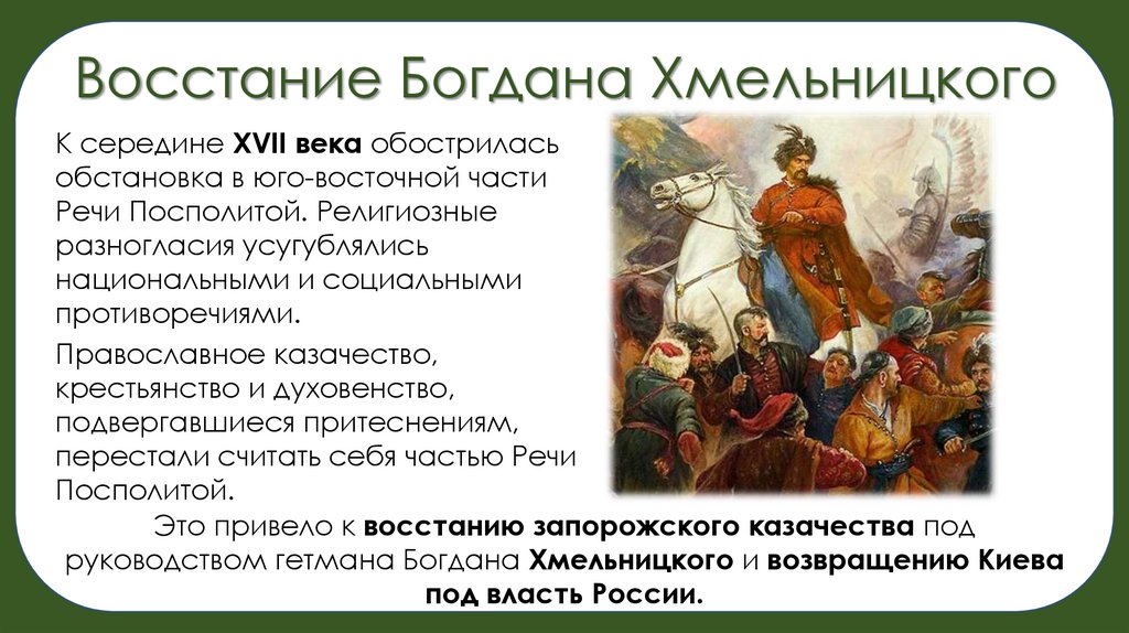 Восстание Богдана ХмельницкогоК середине XVII века обострилась
