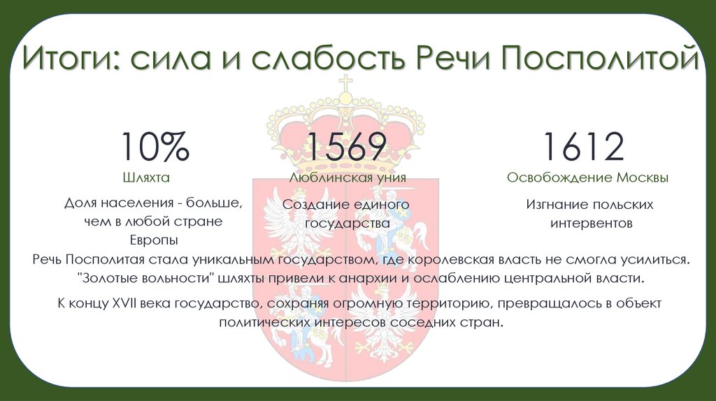 Речь Посполитая стала уникальным государством, где королевская власть не смогла усилиться.