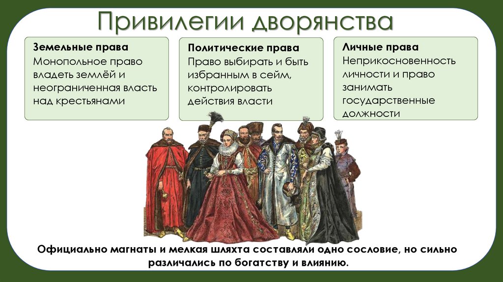 Официально магнаты и мелкая шляхта составляли одно сословие, но сильно
