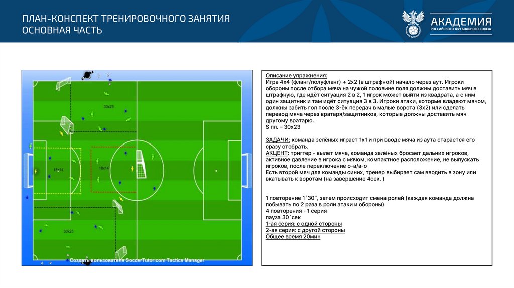 Игра 4х4 (фланг/полуфланг) + 2х2 (в штрафной) начало через аут. Игроки