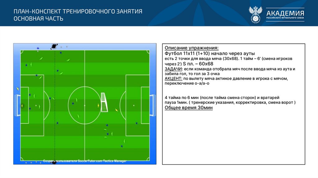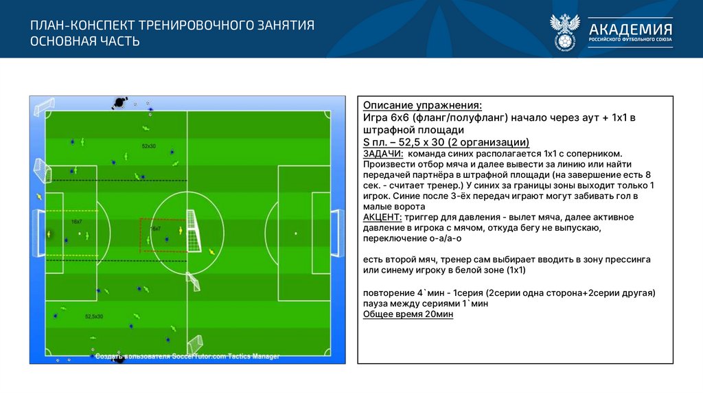 Игра 6х6 (фланг/полуфланг) начало через аут + 1х1 в