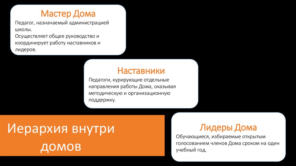 Система Домов направлена на воспитание и развитие обучающихсячерез принципы самоуправления, а также на профессиональную