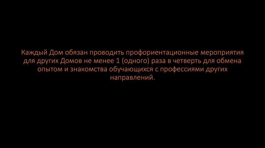Каждый Дом обязан проводить профориентационные мероприятиядля других Домов не менее 1 (одного) раза в четверть для обмена