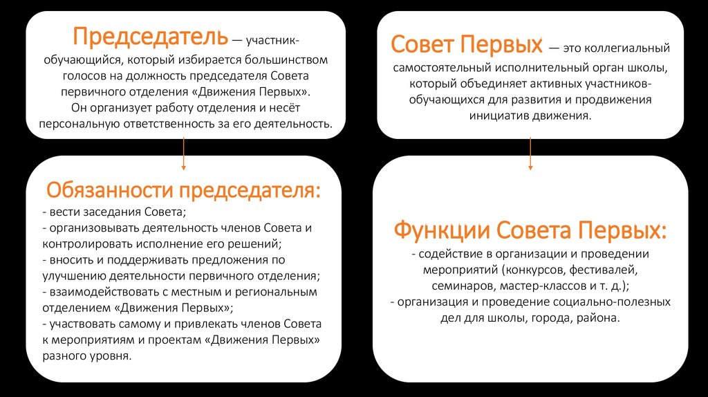 Председатель — участникобучающийся, который избирается большинствомголосов на должность председателя Совета