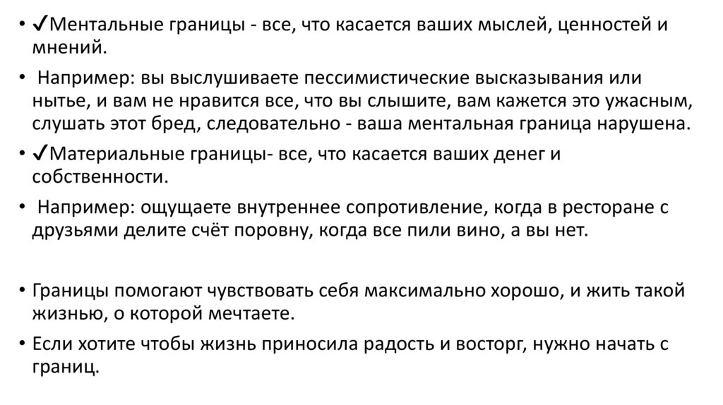 • ✔Ментальные границы - все, что касается ваших мыслей, ценностей имнений.