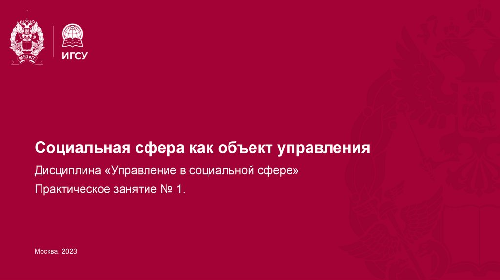 Дисциплина «Управление в социальной сфере»Практическое занятие № 1.