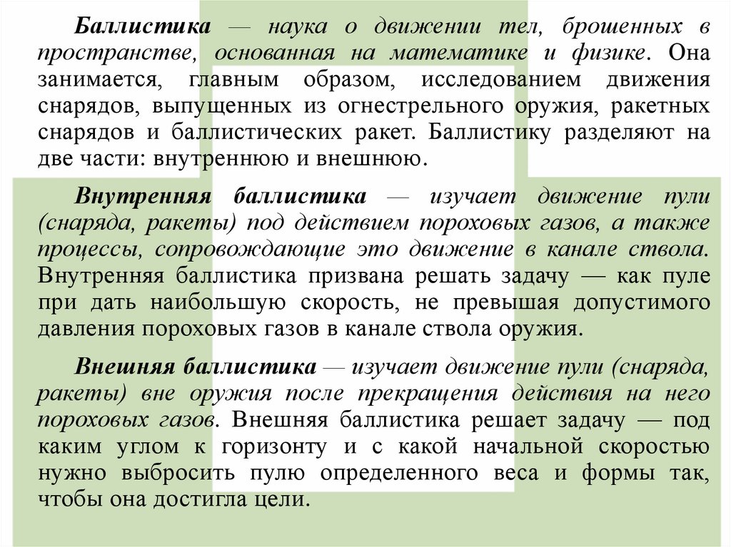 Баллистика — наука о движении тел, брошенных впространстве, основанная на математике и физике. Она