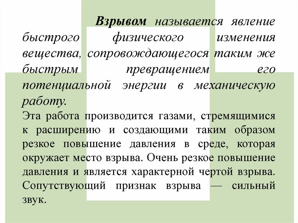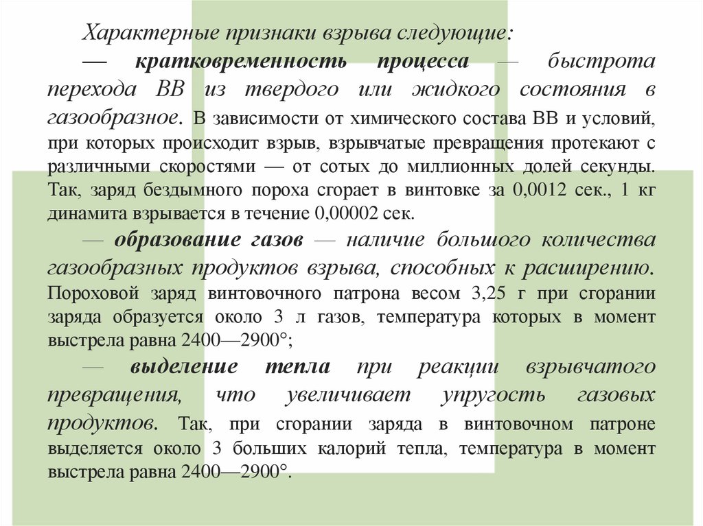Характерные признаки взрыва следующие:— кратковременность процесса — быстрота