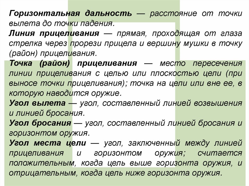 59. Придание оси канала ствола оружия необходимого для стрельбы положения в пространстве называется прицеливанием или наводкой.