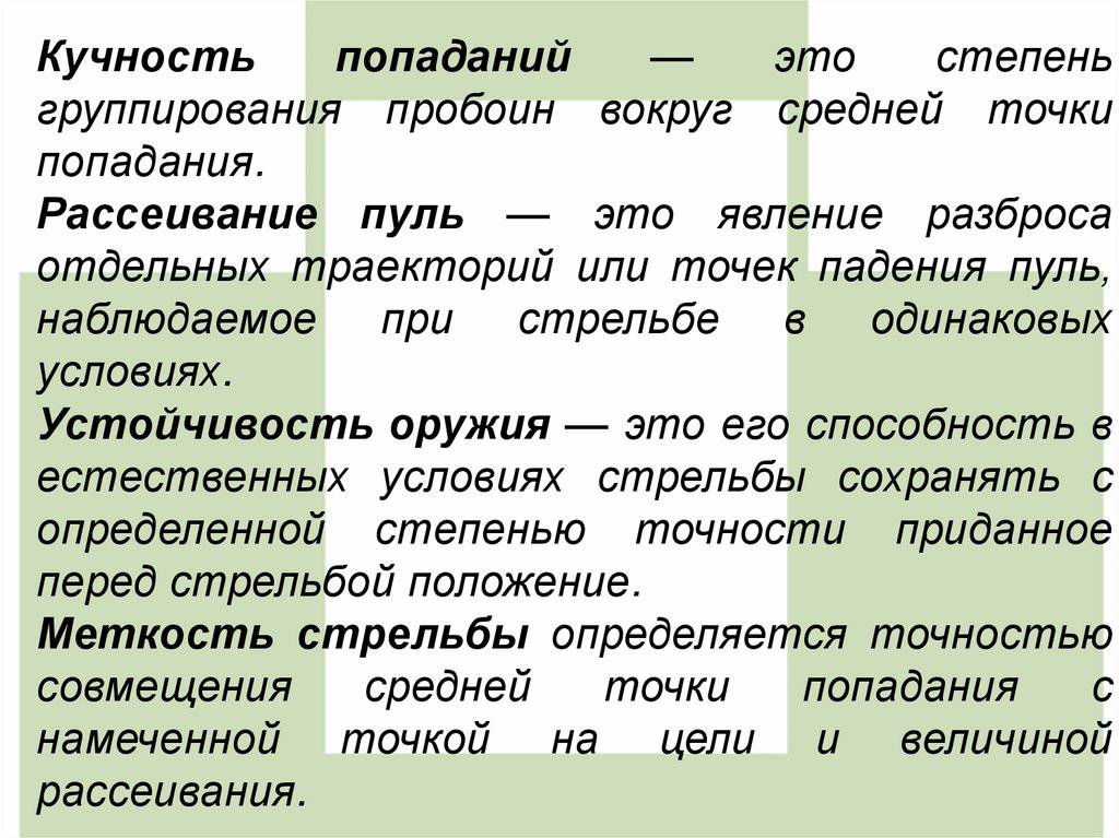 62. «Факторы, влияющие на кучность и меткость стрельбы. Оценка качества техники стрельбы»