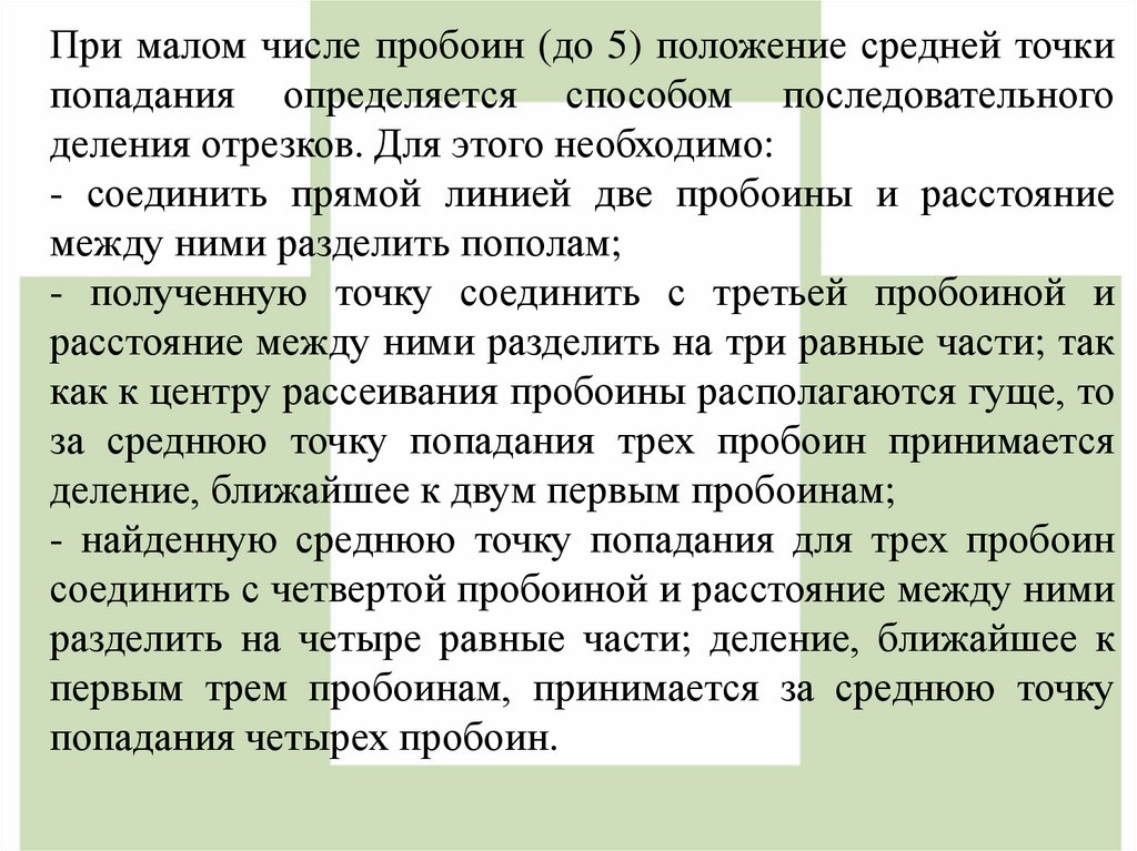 При малом числе пробоин (до 5) положение средней точкипопадания определяется способом последовательного