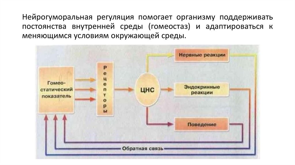 Нейрогуморальная регуляция помогает организму поддерживатьпостоянства внутренней среды (гомеостаз) и адаптироваться к