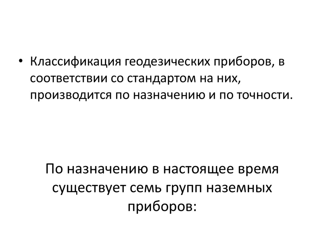 • Классификация геодезических приборов, всоответствии со стандартом на них,