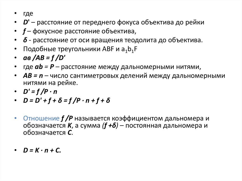 обозначается K, а сумма (f +δ) – постоянная дальномера и