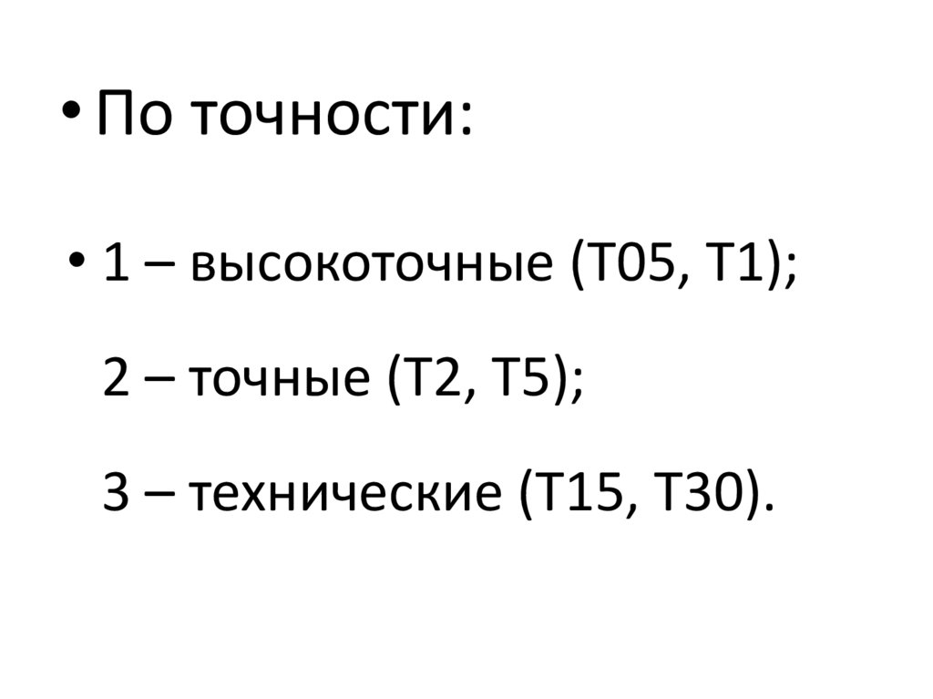 • По точности:• 1 – высокоточные (Т05, Т1);