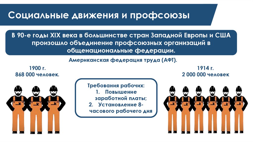 Социальные движения и профсоюзыВ 90-е годы XIX века в большинстве стран Западной Европы и США