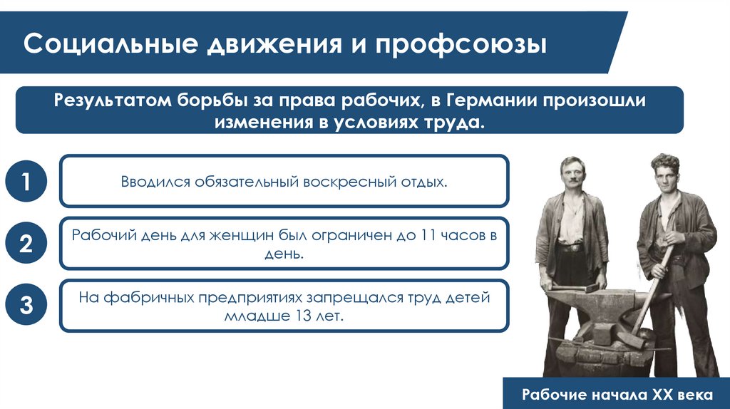 Социальные движения и профсоюзыРезультатом борьбы за права рабочих, в Германии произошли