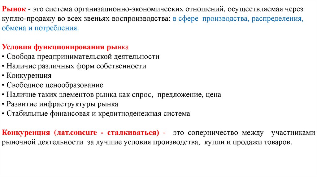 Рынок - это система организационно-экономических отношений, осуществляемая черезкуплю-продажу во всех звеньях воспроизводства: в сфере производства, распределения,
