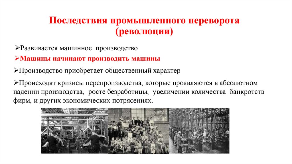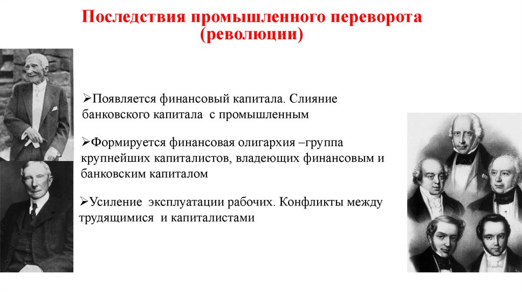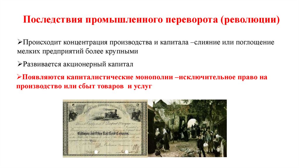 Последствия промышленного переворота (революции)Происходит концентрация производства и капитала –слияние или поглощение