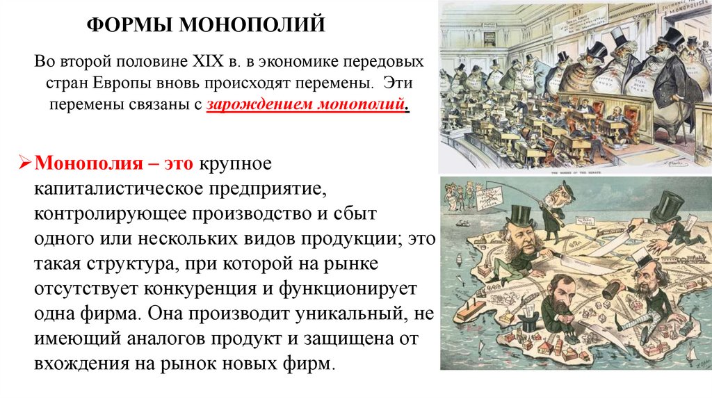 ФОРМЫ МОНОПОЛИЙВо второй половине XIX в. в экономике передовых
