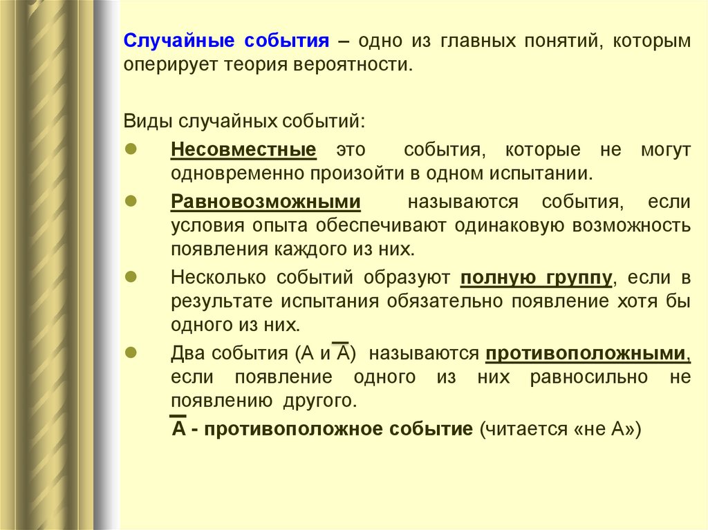 Случайные события – одно из главных понятий, которымоперирует теория вероятности.