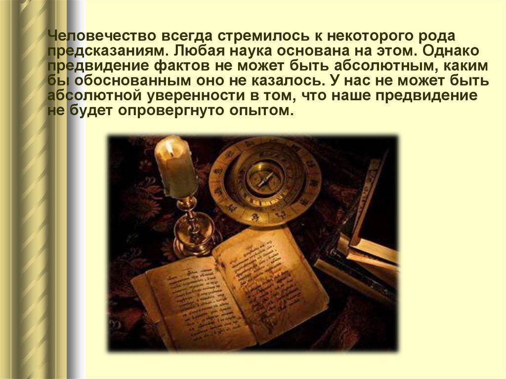 Человечество всегда стремилось к некоторого родапредсказаниям. Любая наука основана на этом. Однако