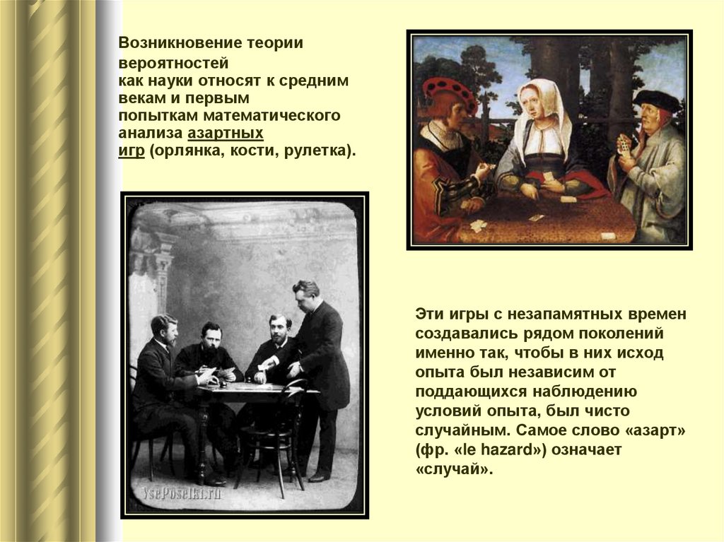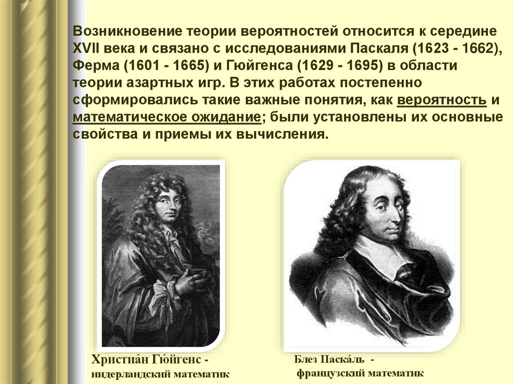 Возникновение теории вероятностей относится к серединеXVII века и связано с исследованиями Паскаля (1623 - 1662),