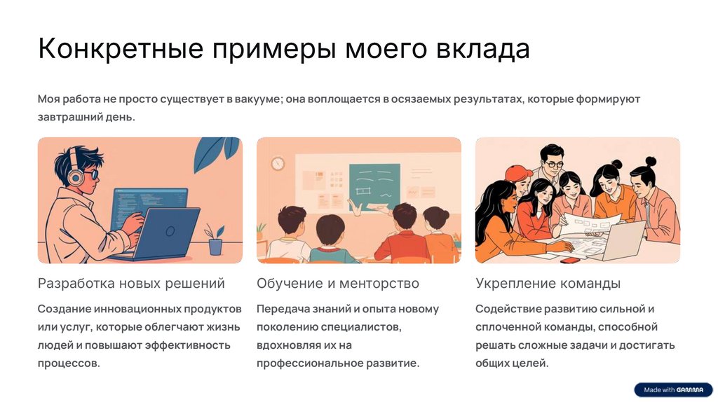 Конкретные примеры моего вкладаМоя работа не просто существует в вакууме; она воплощается в осязаемых результатах, которые формируют