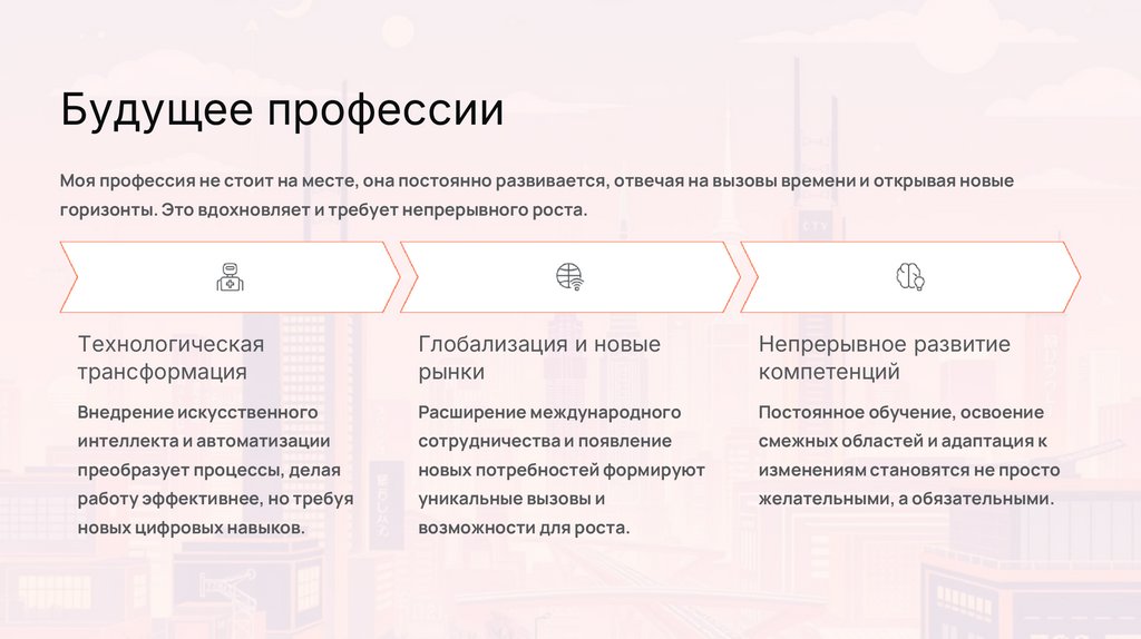 Будущее профессииМоя профессия не стоит на месте, она постоянно развивается, отвечая на вызовы времени и открывая новые