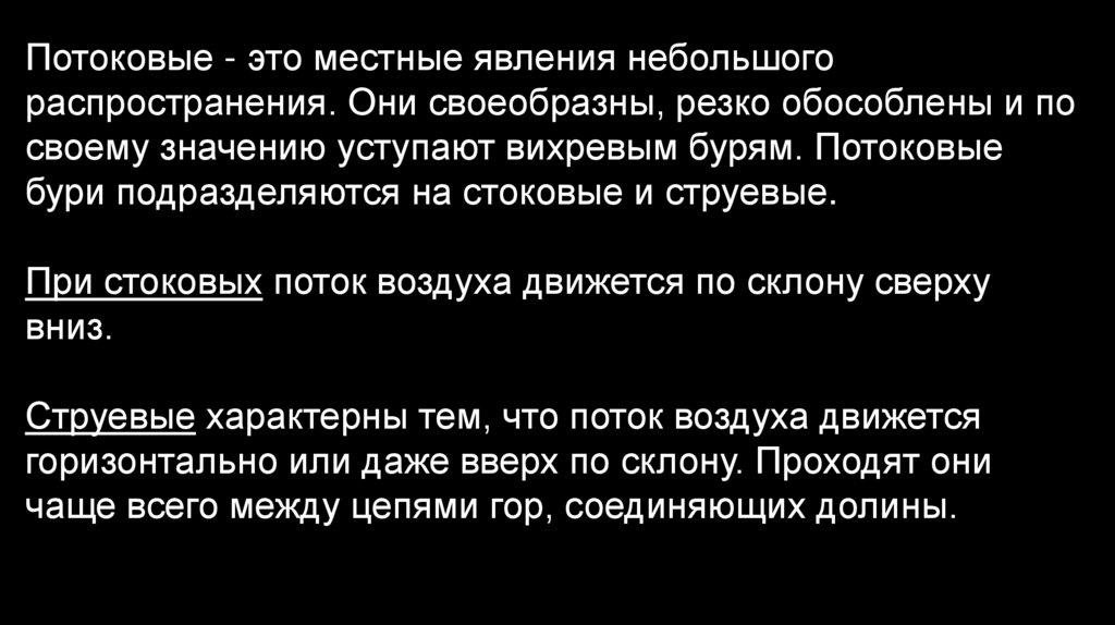 Потоковые - это местные явления небольшогораспространения. Они своеобразны, резко обособлены и по