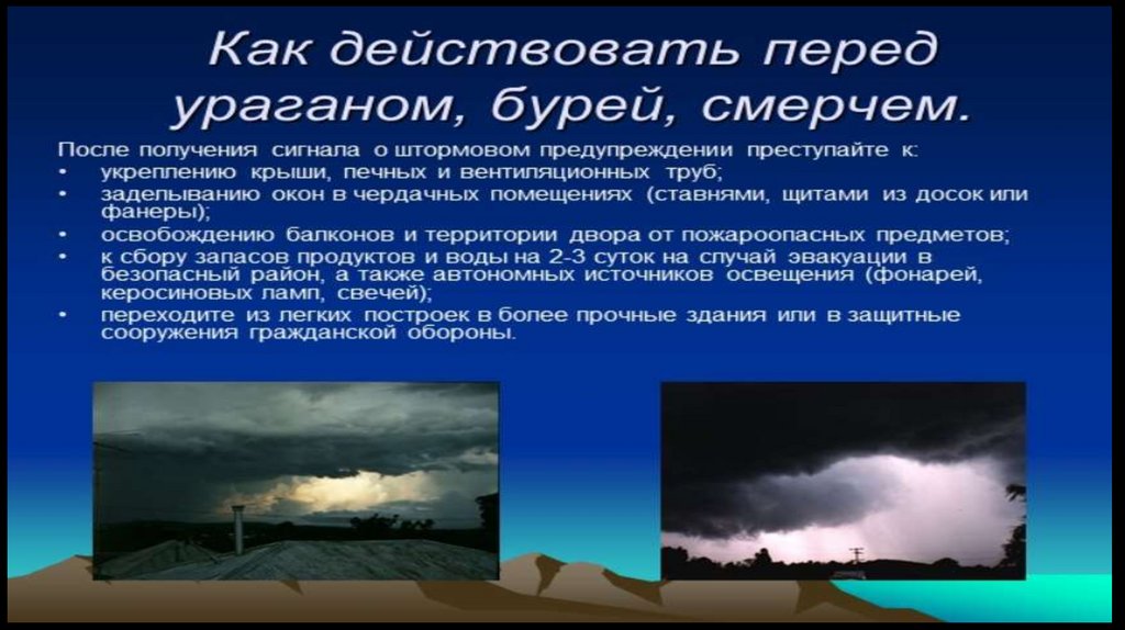 град, электрические разряды. Ураган повреждает прочные и сносит
